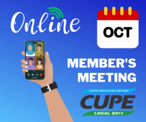 Please email registermember@cupe2011.ca to provide us with a personal email address, so you can continue receiving information from the union and invitations to our meetings.
